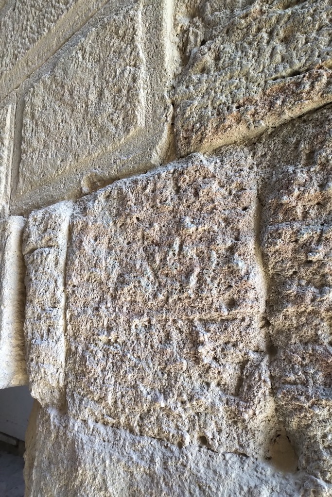 Que c’est beau. L’ocre de la pierre rejoint parfois le rose des robes. Il faudrait que j’écoute davantage l’audioguide qui traîne sur mon ventre, mais l’œil est aspiré plus qu’il ne se promène par les interstices écrasés par l’âge et la pluie depuis des siècles des grands appareils, quand il ne s’amuse pas du contraste avec la roche brutale de la colline qu’on aperçoit dans les Déambulatoires.