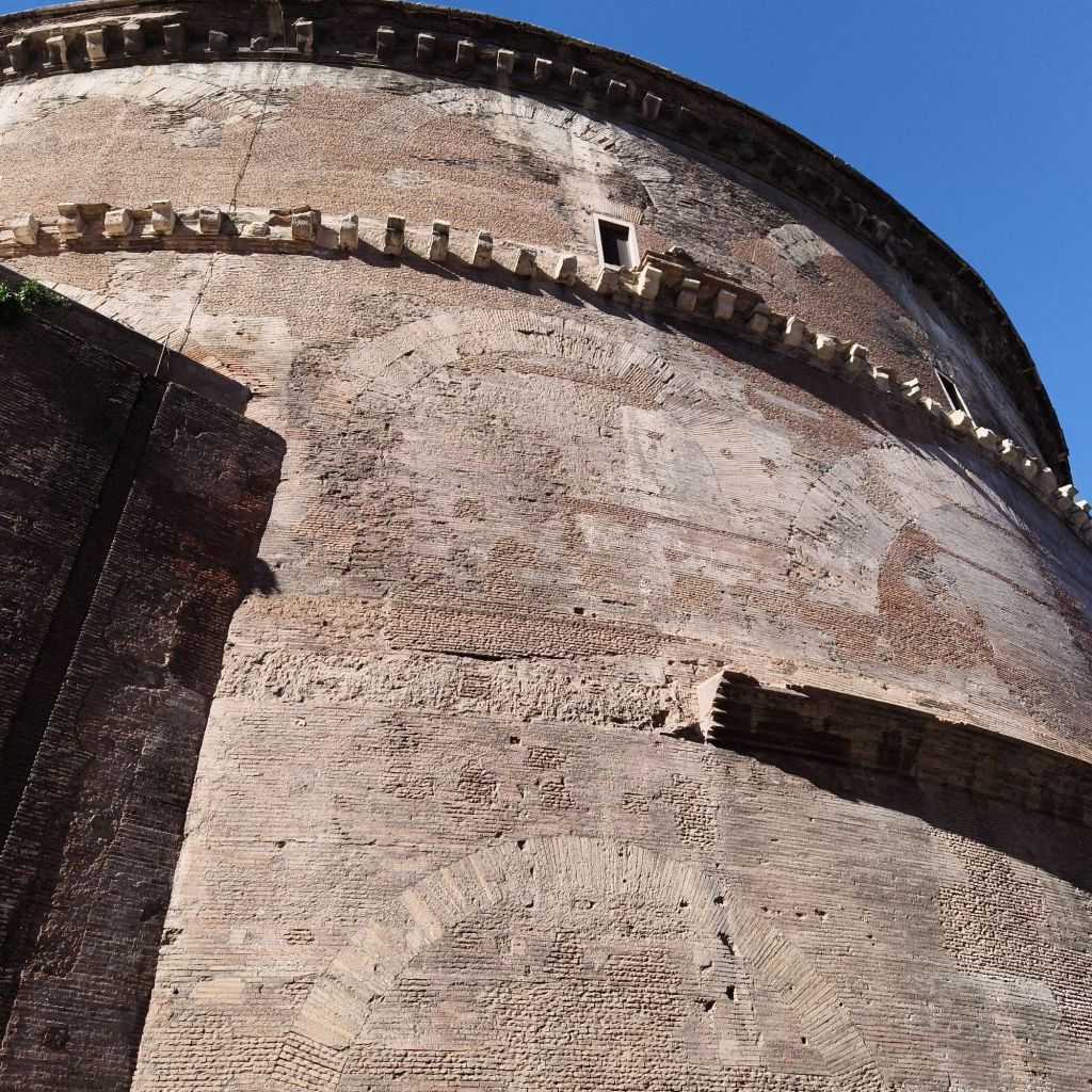 Je laisse mes yeux courir sur la perfection un peu usée de l’agencement arrondi des briques du flanc gauche de l’édifice, alors que mon oreille tire mon corps sur la droite à l’occasion d’une fanfare au travail, instruments à vent de circonstance et tambours plein pot, et qui réussit je crois à détourner la foule un instant de la ville éternelle ; d’ailleurs en arrivant je me demandais ce qui pouvait bien se passer aujourd’hui, des policiers nous bloquaient le passage le long de la route, tous les passants attendaient un cortège ou quelque chose qui ne venait toujours pas.